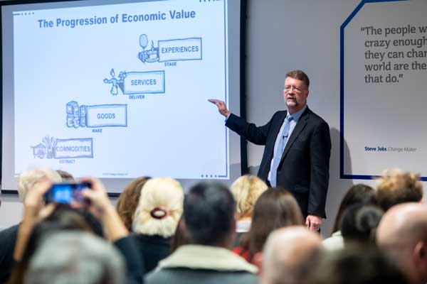 The Experience Economy Expert Certification course credentializes professionals, managers, and executives as officially endorsed experts in the principles, models, and methods of experience staging. Participants engage deeply with the full body of work from The Experience Economy, including the Progression Of Economic Value, experience design principles, facilitation techniques, and proven approaches for applying and teaching these ideas inside organizations.
